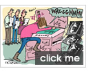 It's weird. At first, I missed the adrenaline and the pointless competition with the bell. But hey, punctuality rocks! I now have seven minutes to make this photocopier grovel and obey me. Let's see what this shiny white instruction booklet has to say about your sorry life. "Basic Errors" (that's machine-speak for "Problems you will only encounter if you are a moron"). "To re-enter code, switch machine off and on again." Oh dear. That's a bit unoriginal, isn't it? OK. "Beep. Warming up. Please wait." What's so galling is that here's a human brain, which scientists claim to be the most complicated thing in the universe. And here's a photocopier, which claims to be one of the simplest things in the universe. And yet the photocopier is the master and I am the slave. Something ain't right. For a while, its status as chief mechanical bastard in my life was briefly challenged by the interactive whiteboard. What a creepy name that is. I don't want to "interact" with you: I want you to do things for me, same as any other bloody machine. The whiteboard understands this now. But the photocopier won't give up its role as staffroom