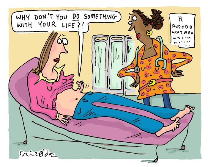 A very small one, and it's not dangerous, but we'll get a surgeon to repair it so it doesn't cause problems later." "Er ... so ... it's not ... really bad, then?" "Not at all. The surgery is routine, nothing to worry about." Routine! Why did I once hate that word? It's a safe, clean hug of a word. Routine. "Oh, that's great." "Now, what's your availability like?" "I'll just check my diary." My beautiful little diary, with lots of days still left in it to live because I'm not going to die. Well, I am, but not because of this. "I could take a day off work, and I haven't booked any holidays yet." "Fantastic. I'll be in touch. In the meantime, don't move any more desks." This diary has got me thinking. Up ahead, there are clean white pages, ready for anything. Behind, there are months of frenzied tick-fests. "Mark Z!" "Find Y!" All done and mostly forgotten. Is that what I want for the rest of the year? There is something else, too. All the things I have ticked are things I did for other people. The things I had planned for myself have been crossed out, no doubt because I was too tired or too busy to do them. "Go dancing." "See film." Neat lines through all of them. I have been crossing out my life. For how long, I wonder? Well, at least I've noticed now. Thank you, small, non-threatening hernia. A cough, a desk, and a doctor: that's all it took, and now I'm seriously thinking about leaving my job. The deadline for resignations is a week away. Think, Shark: what do you want? I don't know. I know what I don't want, though. I don't want to carry on crossing out my life. I mean, what if this bump on my tummy had been a real bastard? Now I'd be thinking: OK, I've got six months to live. I'm going to leave this school right now and go for a swim in the sea. I haven't done that for years. I would go straight down to the sea again, to the lonely sea and the sky. I'd wear something shiny around my neck so that little fish would swim up and take a closer look at it, wondering if this was a really special fish. Instead, I'm facing more work from our lazy new head of department, and more poison from the slimy cow who wanted his job and didn't get it. There's only one question to answer now, then I'll know what to do: where is the evidence that any of this is going to change?